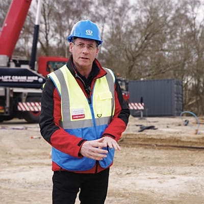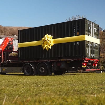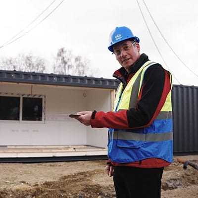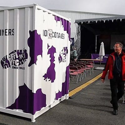 Howard out on site, visiting and appearing in videos of modified shipping container projects.